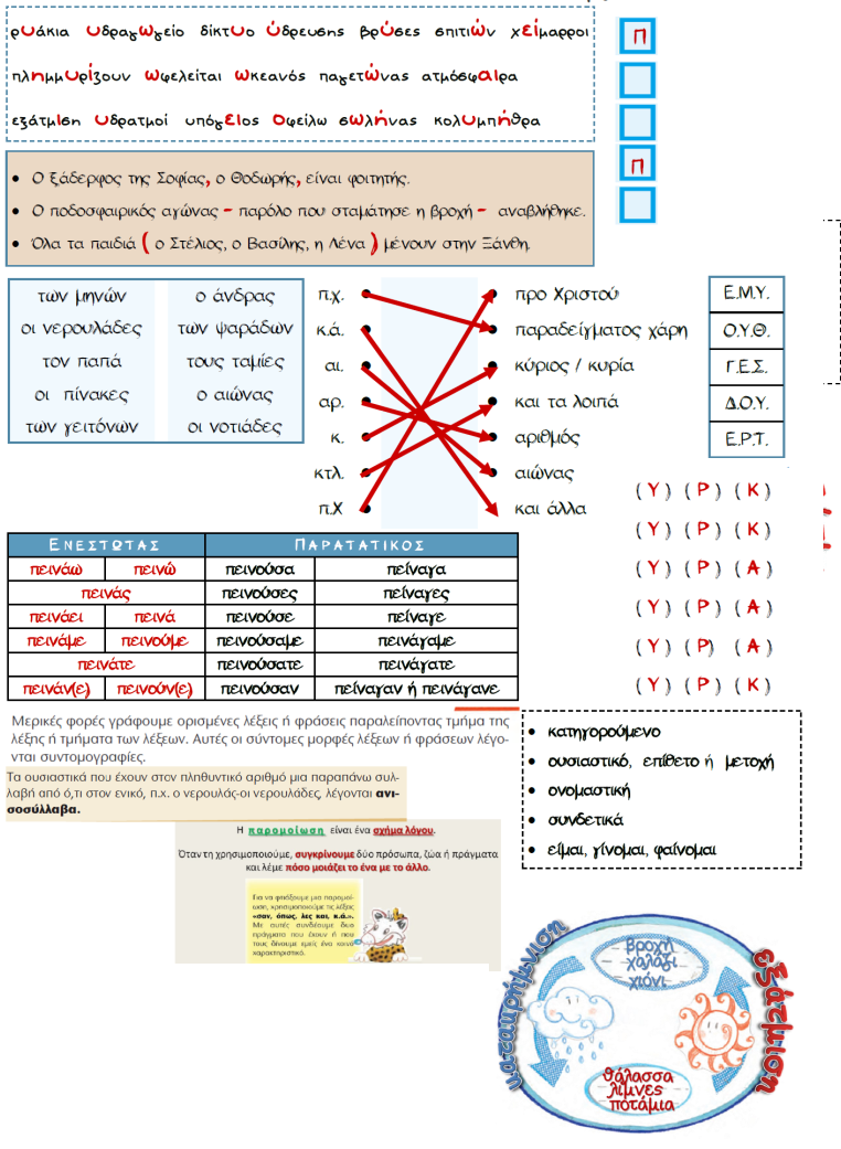 Οι μύθοι και η ελιά 3 - Μαρτίου 03, 2022 Θυμηθήκαμε σήμερα πώς κλίνονται τα θηλυκά ουσιαστικά σε -α, ισοσύλλαβα και ανισοσύλλαβα. Φτιάξαμε και 2 ταυτότητες, του Αρισταίου και τη δική μας. Η παρουσίαση Το φυλλάδιο Διαβάστε περισσότερα